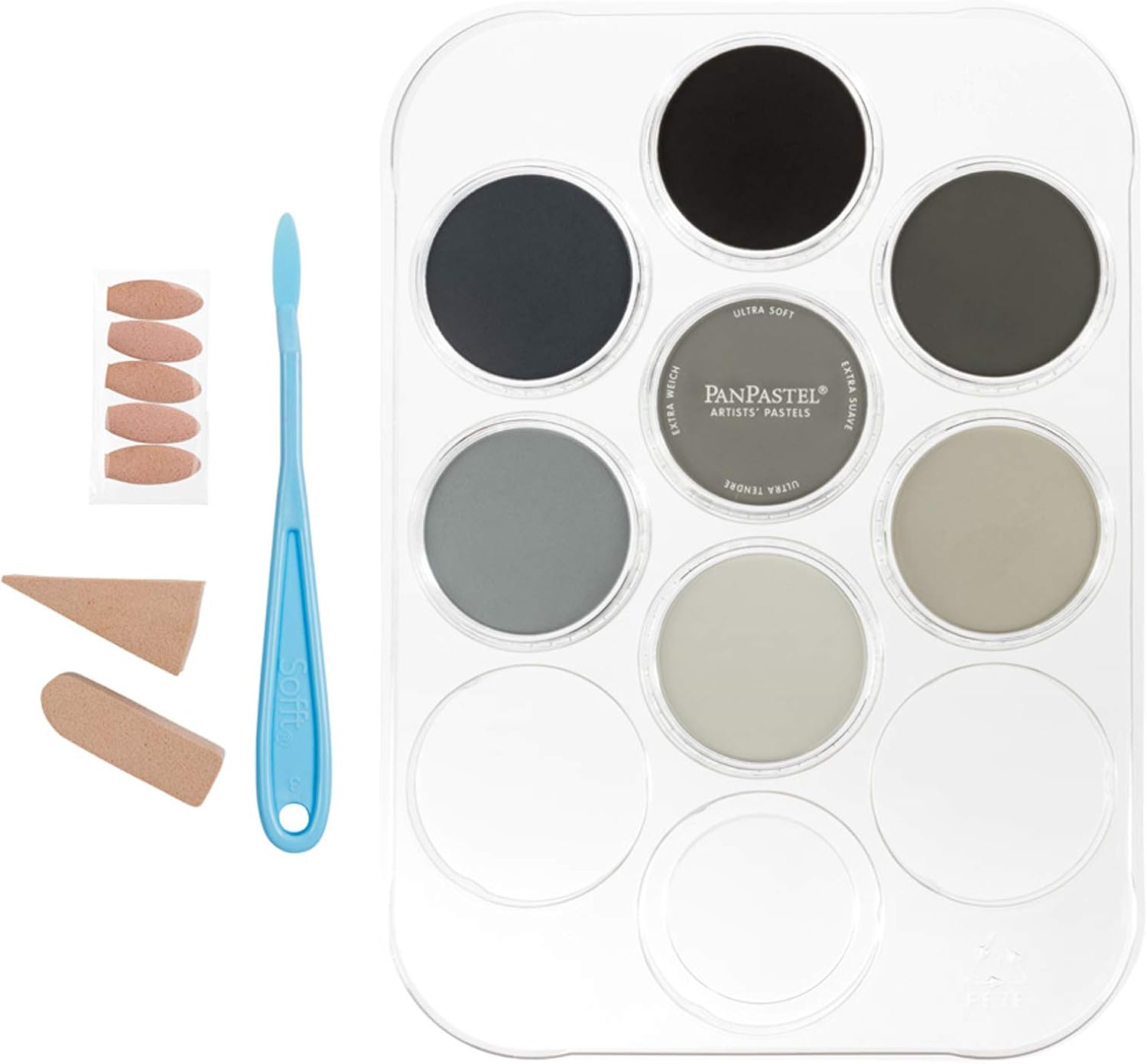 PanPastel Artist Pastels by GOLDEN, Greys, Grime & Soot Set, 7 Color, Professional Artist Pastels, Unique Pan Format (cake-like)