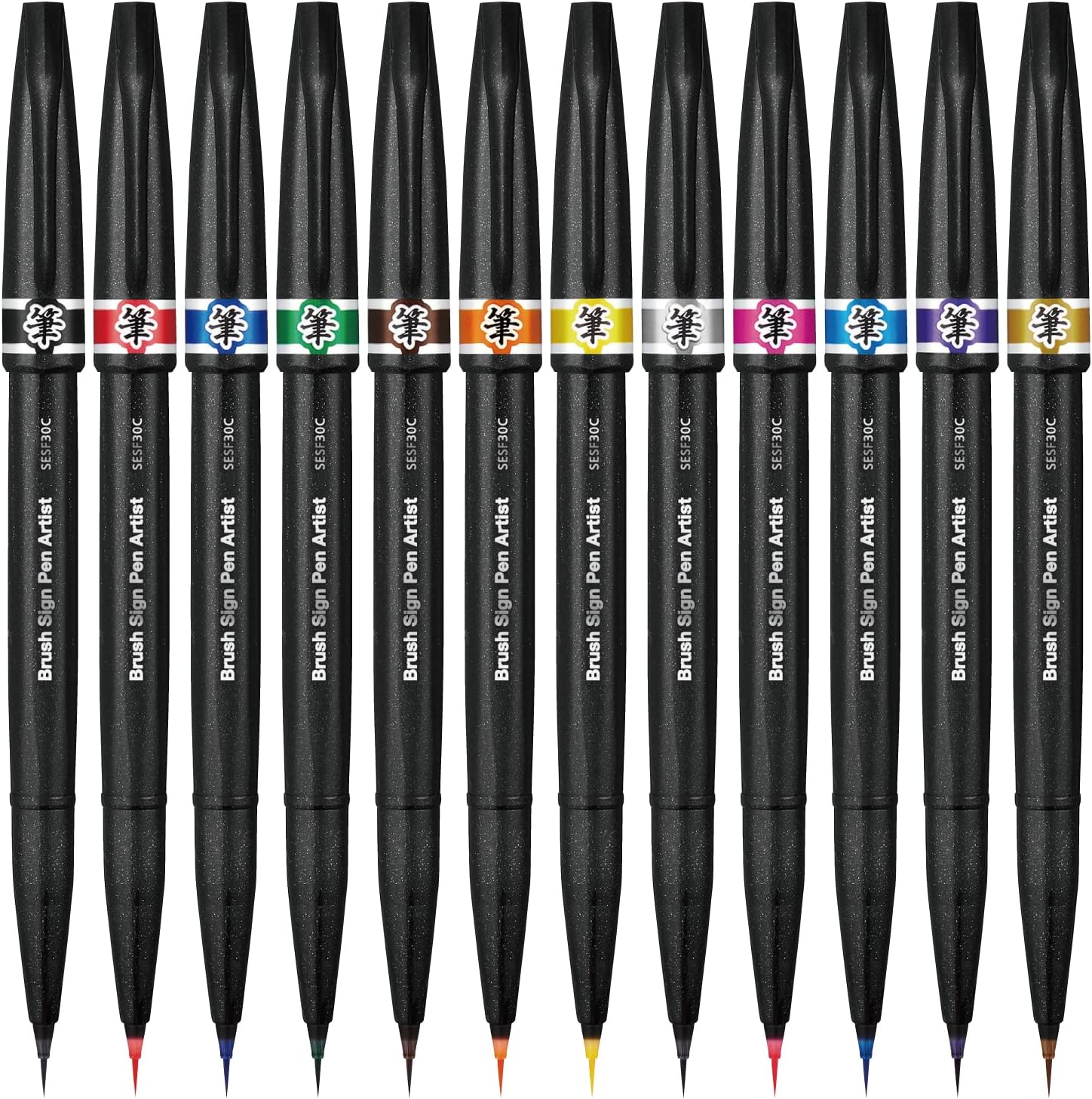 Pentel AMZ-SESF30C-12 Blush Sign Pen Artist Brush Pen, Set of 12 Colors