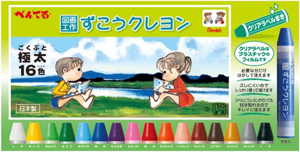 Pentel arts and crafts crayons clear label Maki 16 colors PTCGP1-16
