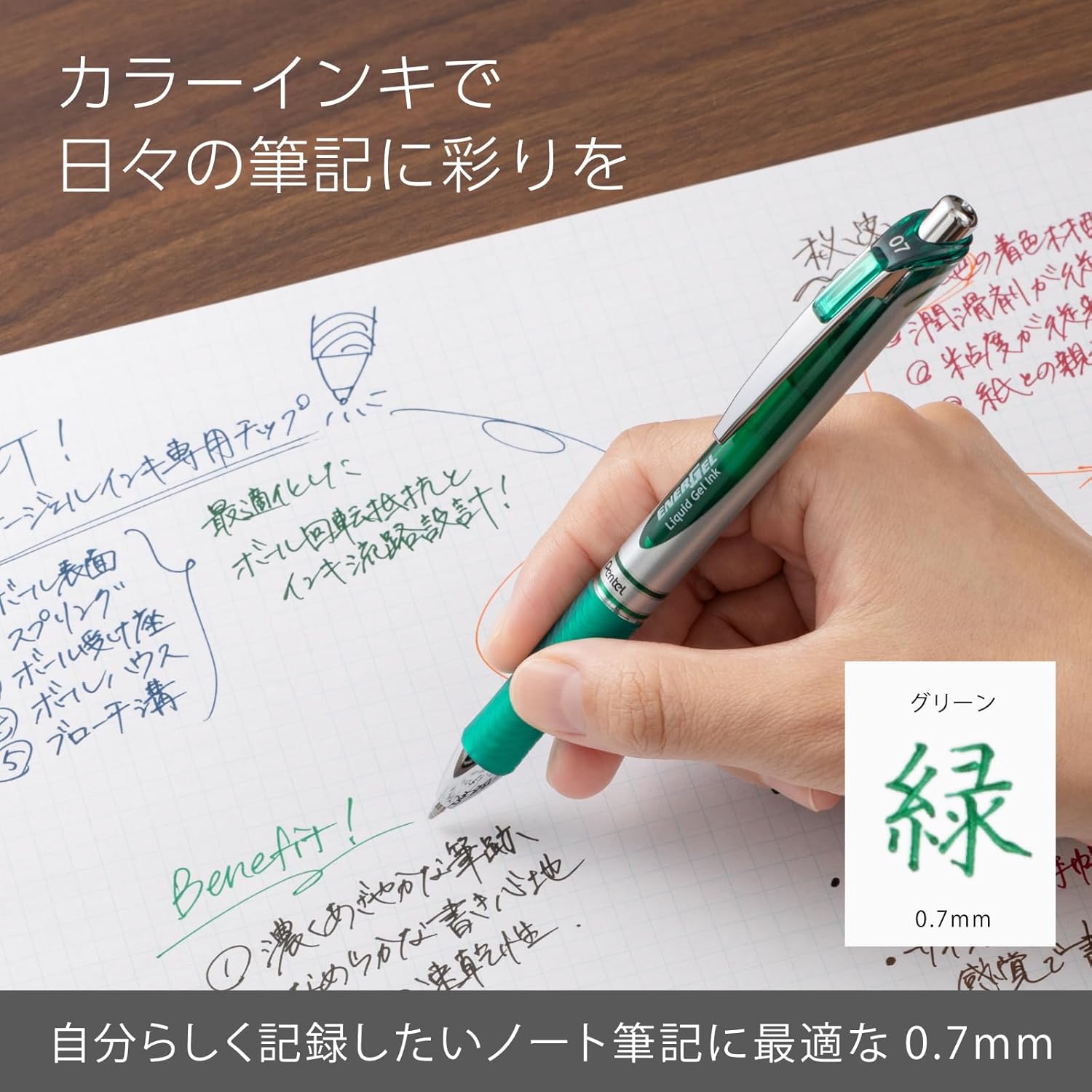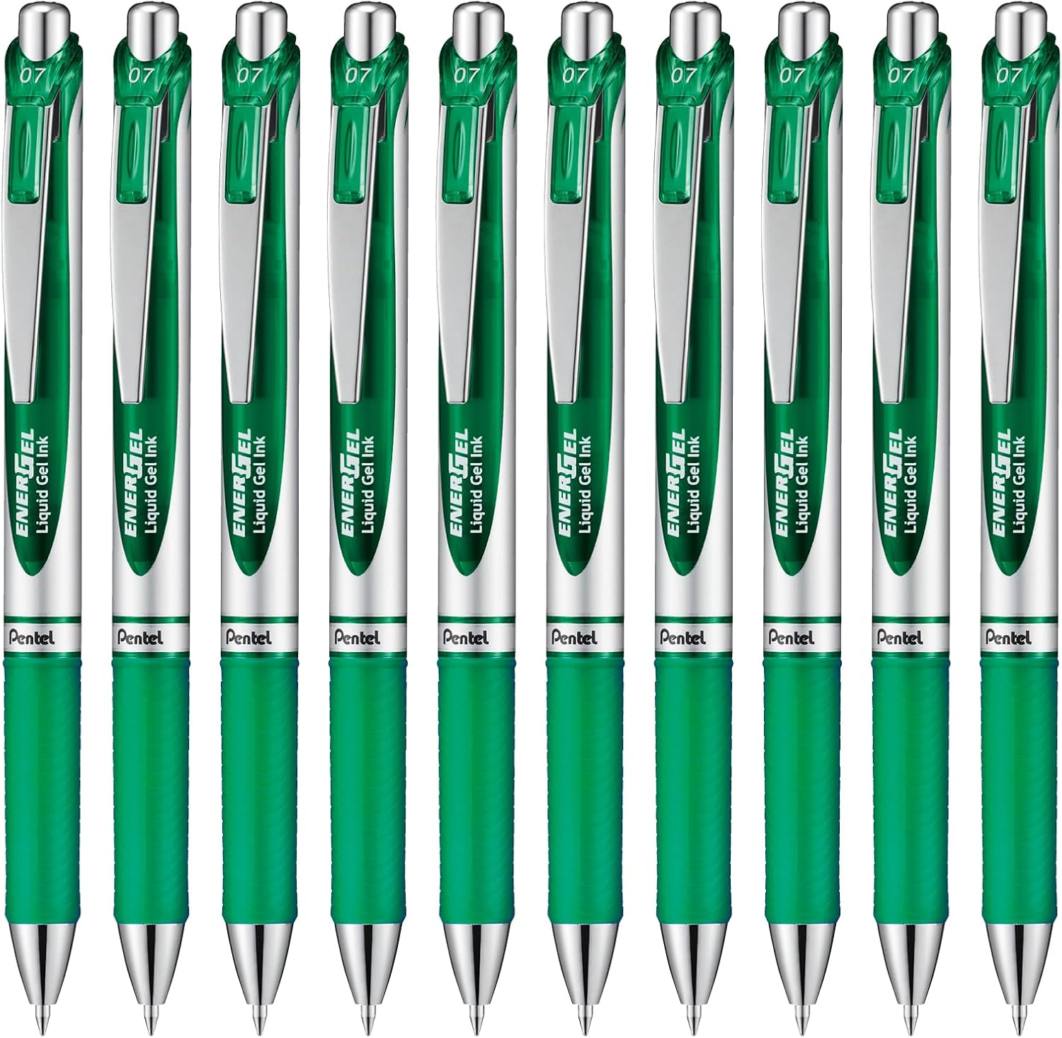 Pentel BL77-D Gel Ink Ballpoint Pen, EnerGel 0.7mm, Limited Green, 10 Pens