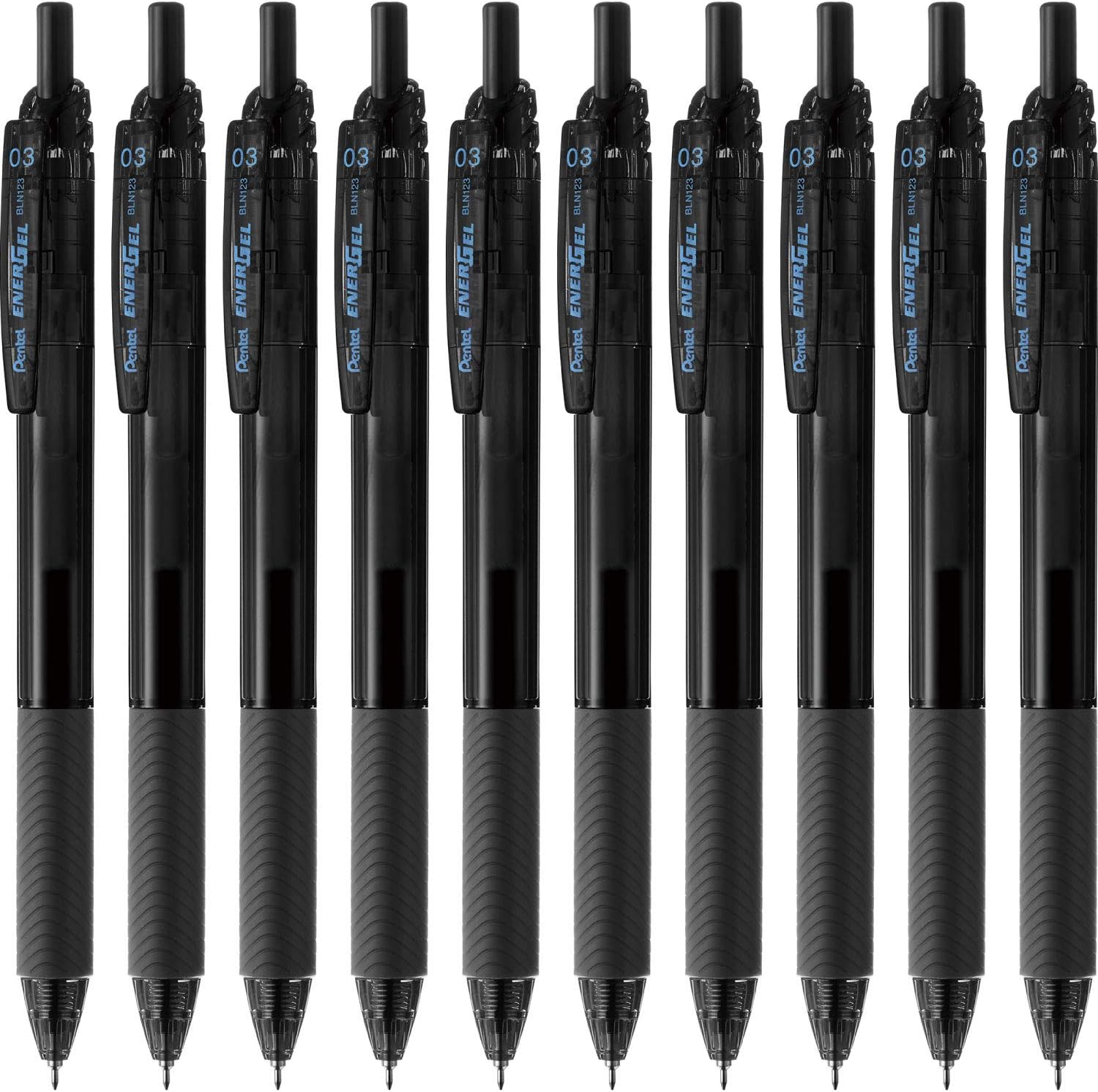 Pentel BLN123-A Gel Ink Ballpoint Pen, EnerGel S, 0.3mm, Black, 10 Pieces