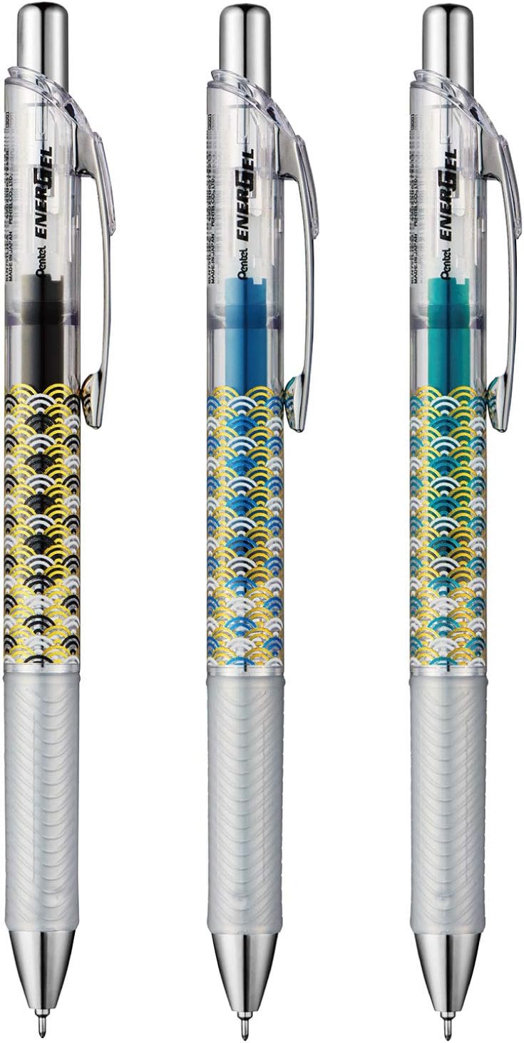 Pentel BLN75TLJ-3A Gel Ink Ballpoint Pen, 0.5 mm, Limited Japanese Pattern, Set of 3