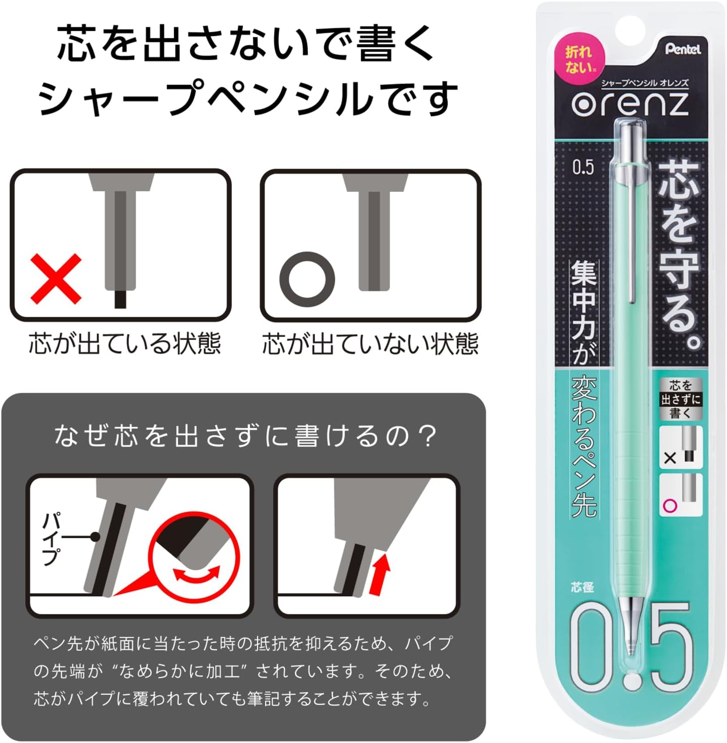 Pentel Core Not Break Mechanical Pencil, Mint green (XPP505-GD)