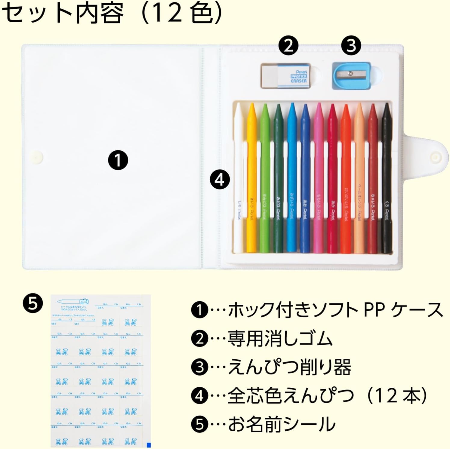 Pentel GC1-12D Crayon Pencils, Pastic, 12 Colors