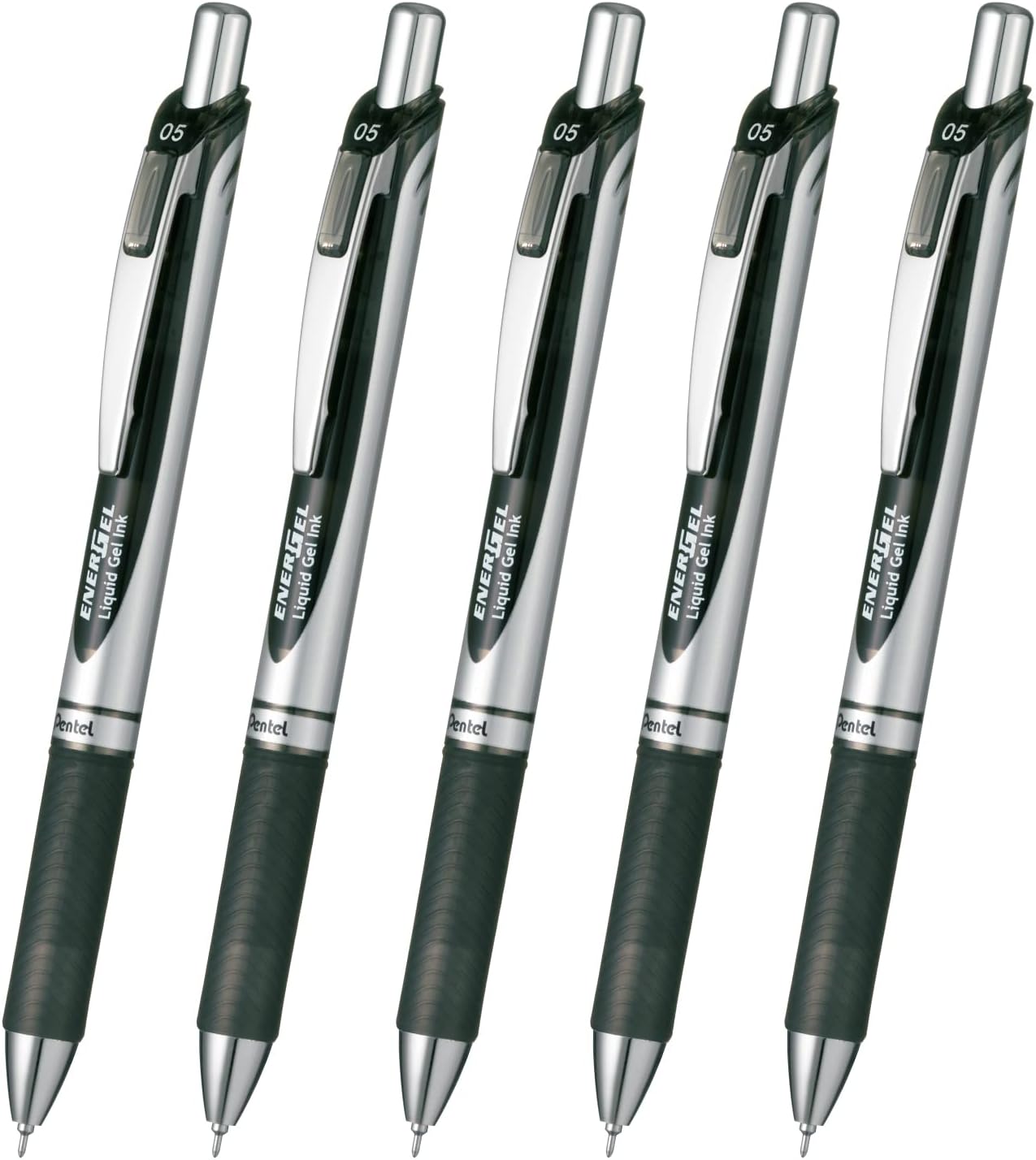 Pentel Gel Ink Ballpoint Pen, ENERGEL 0.5 BLACK XBLN75ZA 5 PCS