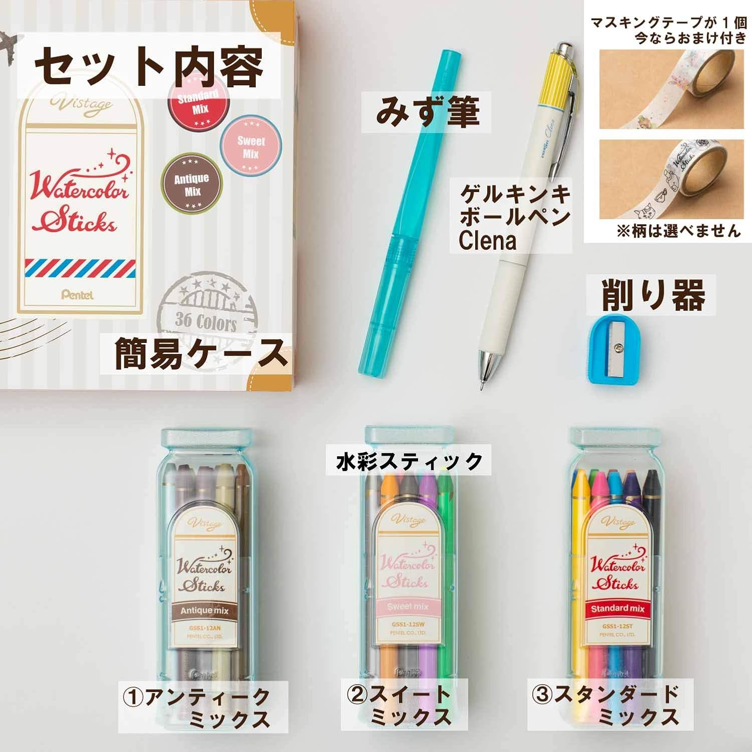 Pentel GSS1-36AMZ All Core Colored Pencils – Watercolor Stick, 36 Colors Set