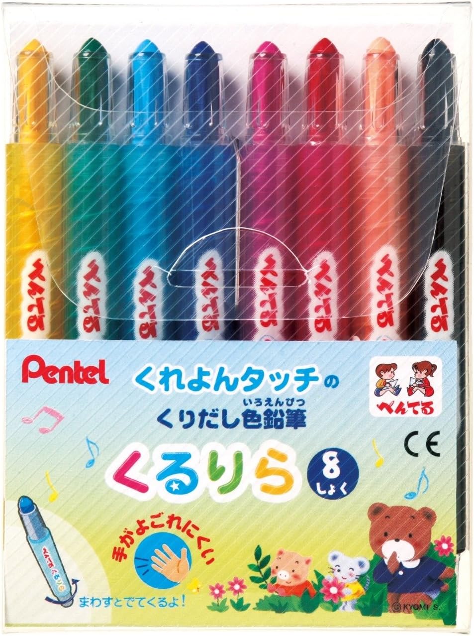 Pentel GTW-8 Kururira Twist Crayon, Set of 8 Colors