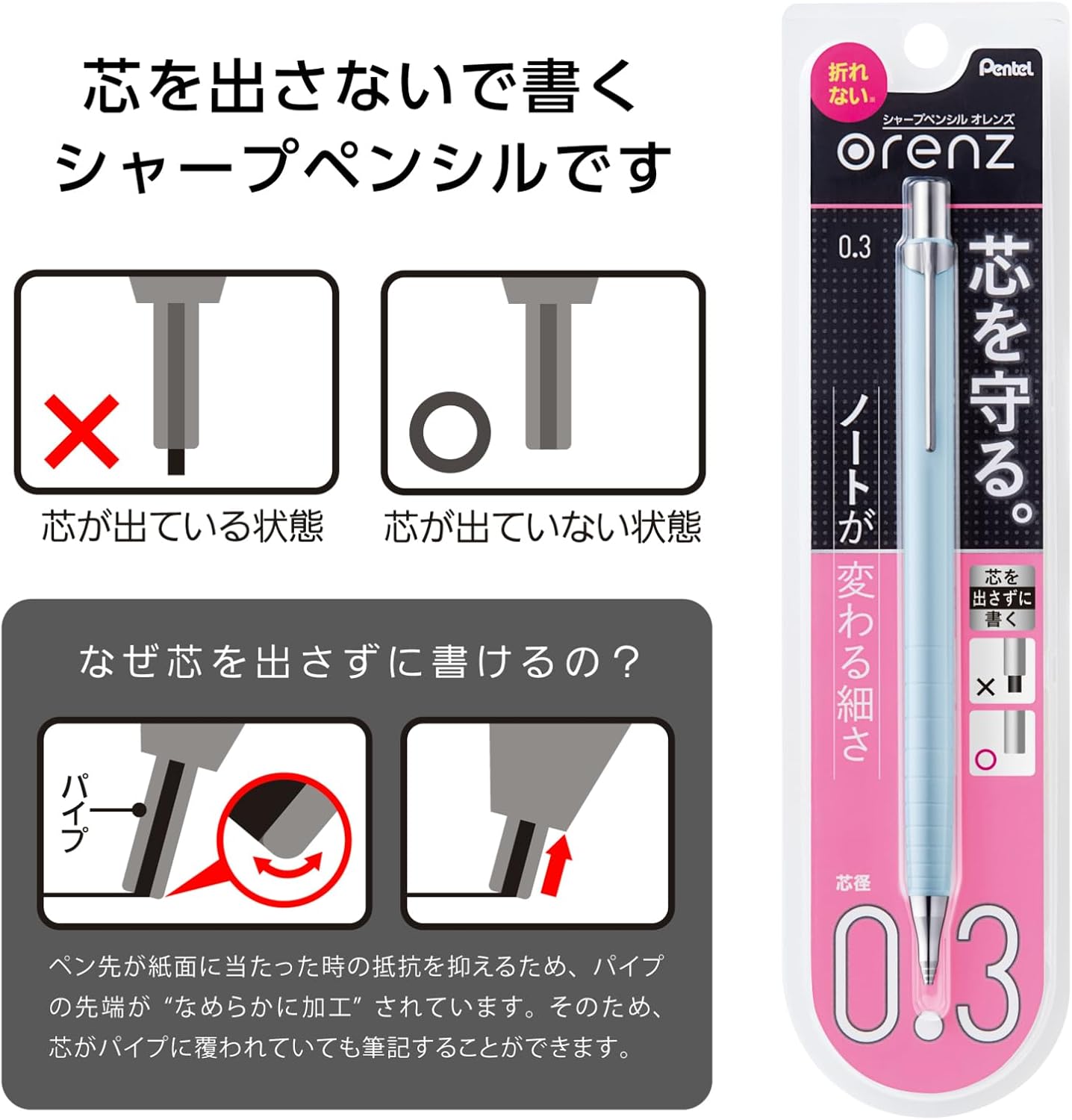 Pentel Mechanical Pencil, Orenz 0.3mm, Serenity Blue (Xpp503-S2)
