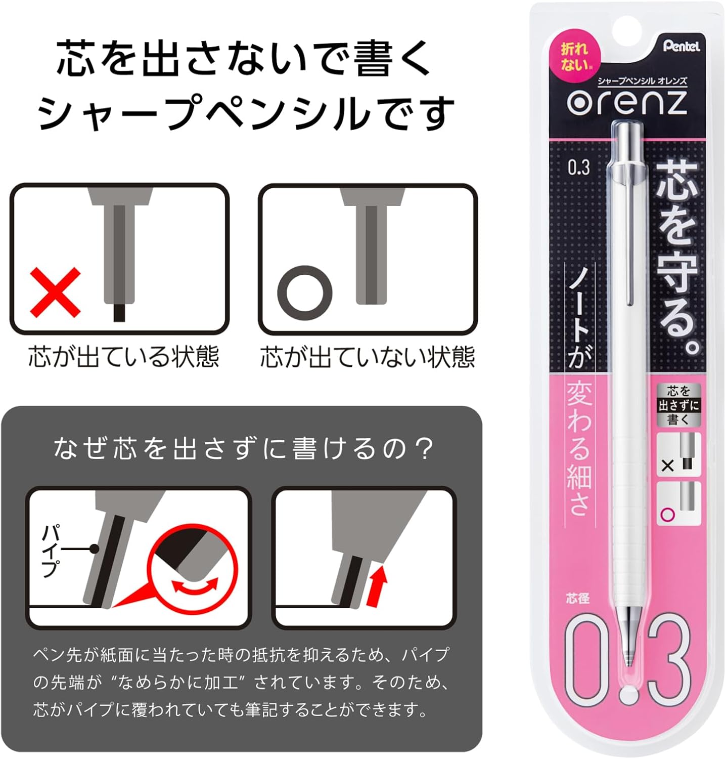 Pentel Mechanical Pencil Orenz 0.3mm, White Body (XPP503-W)
