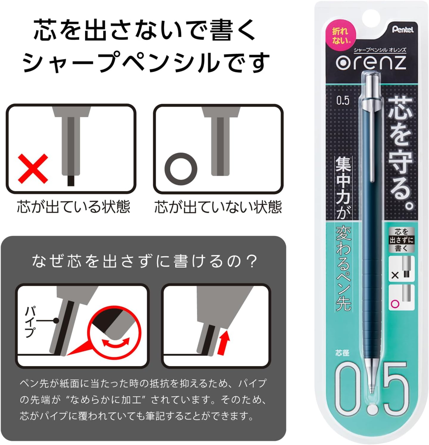 Pentel Mechanical Pencil, Orenz, 0.5mm, Navy (XPP505-C2)