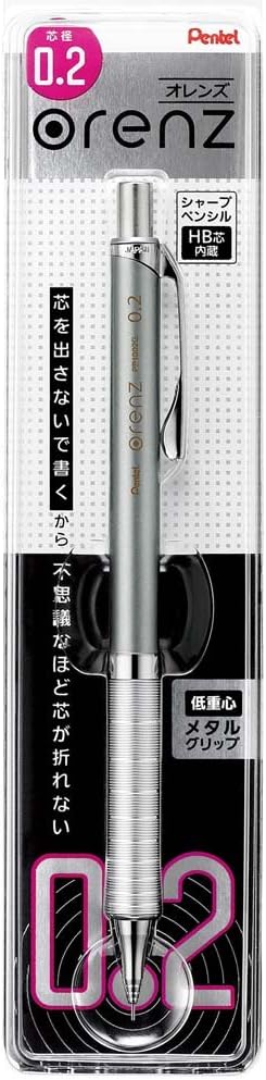 Pentel Mechanical Pencil, Orenz, with Metal Grip, 0.2mm, Silver (XPP1002G-Z)