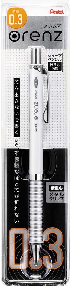 Pentel Mechanical Pencil, Orenz, with Metal Grip, 0.3mm, White (XPP1003G-W)