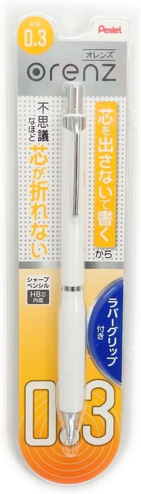 Pentel Mechanical Pencil Orenz with Rubber Grip 0.3mm, White Body (XPP603G-W)