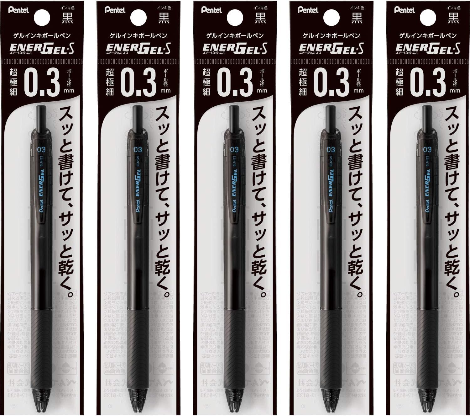 Pentel XBLN123-A EnerGel Ink Ballpoint Pen, 0.01 inches (0.3 mm), Black, 5 Pieces