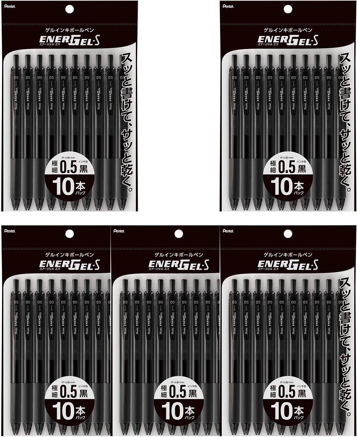 Pentel XBLN125-A10 EnerGel Ink Ballpoint Pen, 0.02 inches (0.5 mm), Black, Pack of 10, 5 Pieces