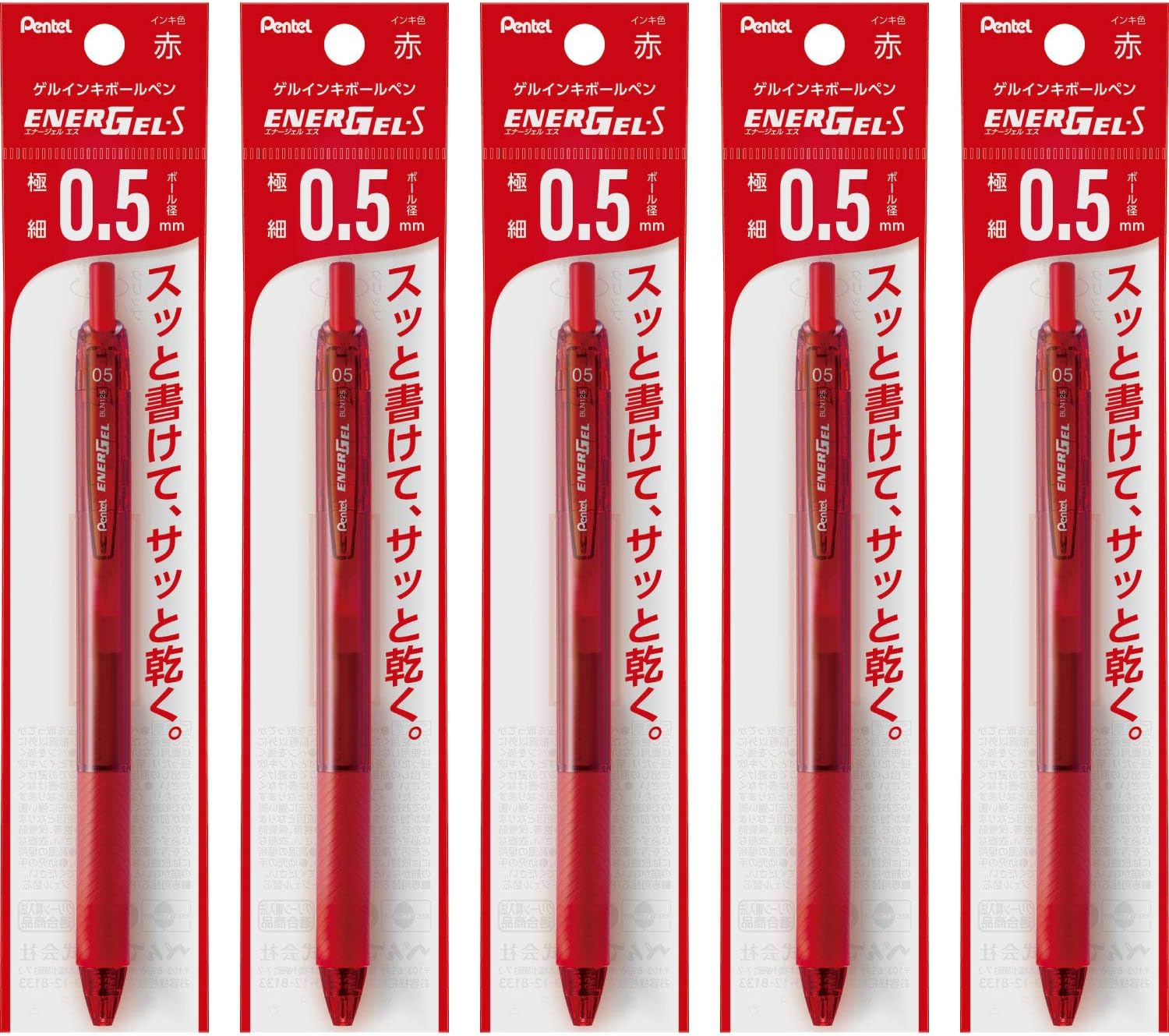 Pentel XBLN125-B EnerGel Ink Ballpoint Pen, S, 0.02 inches (0.5 mm), Red, 5 Pieces