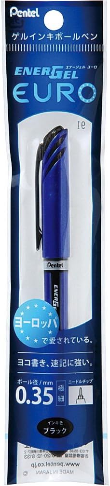 Pentel XBLN23-A Gel Ink Ballpoint Pen, ENERGEL EURO, 0.35mm Black, 5 Pens