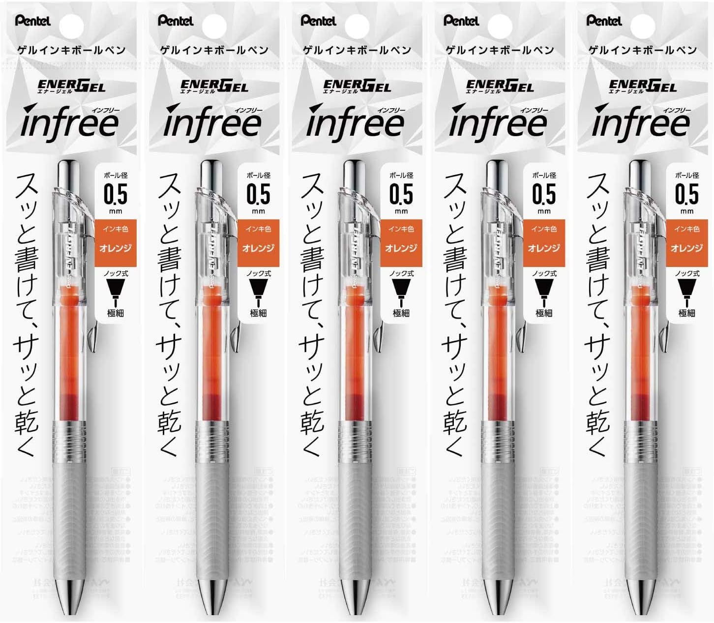 Pentel XBLN75TL-F Gel Ink Ballpoint Pen, ENERGEL IN FREE 0.5 Orange, 5 Count