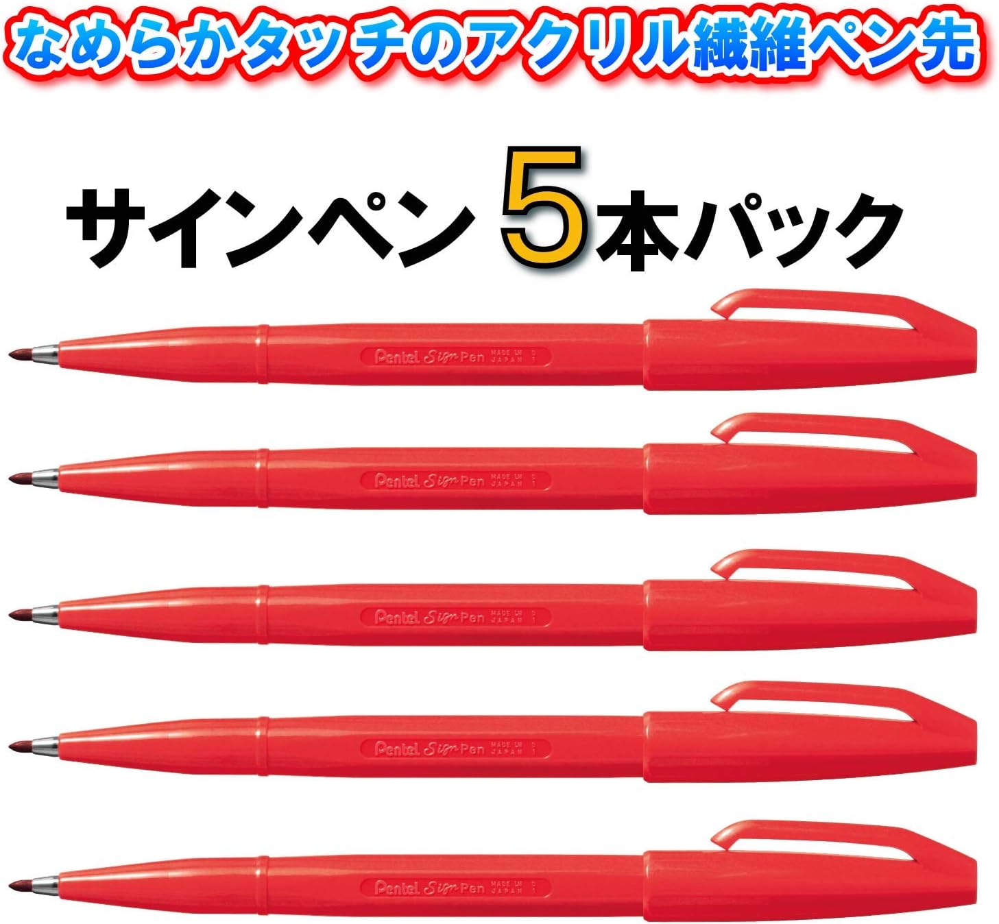 Pentel XS520BD5 Sign Pen, Pack of 5, Red