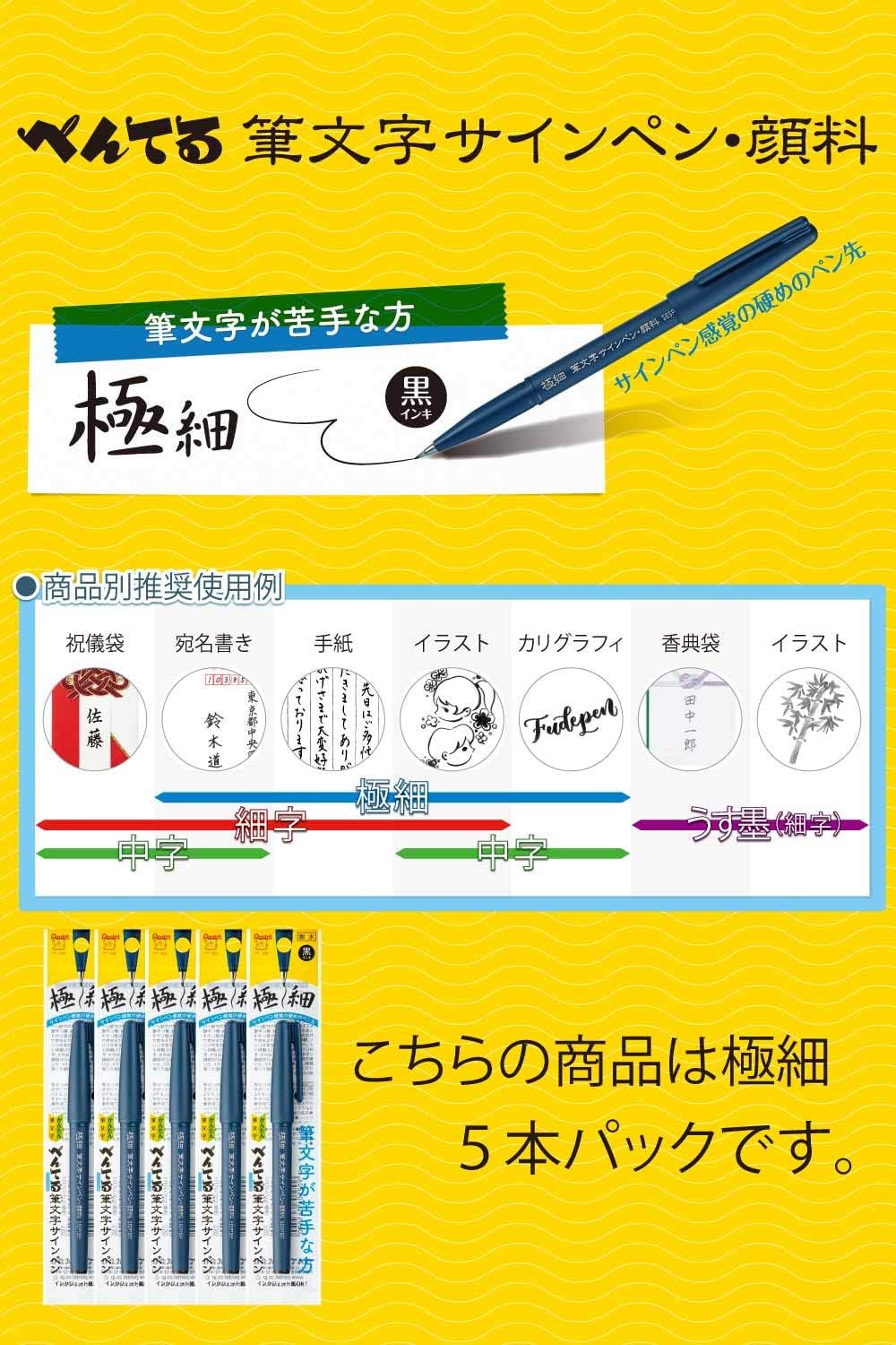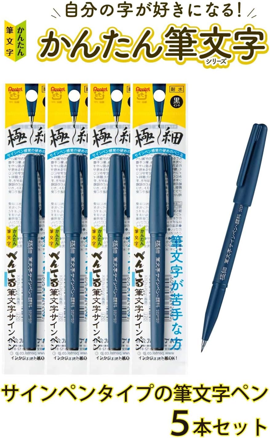 Pentel XSESP15EFA Calligraphy Sign Pen, Pigment Type, Ultra Fine, 5 Pens