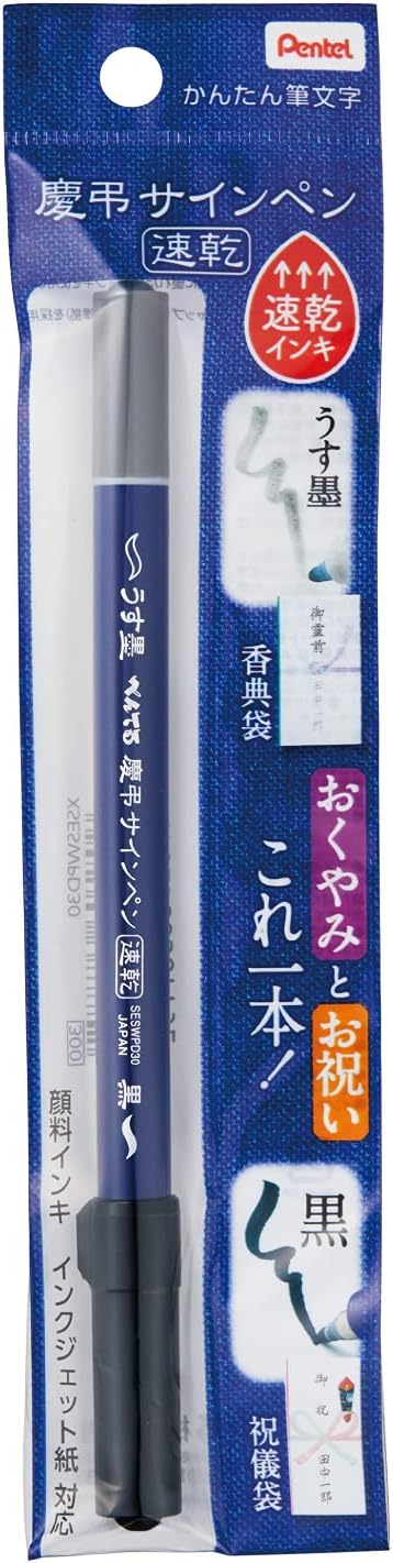 Pentel XSESWPD30 Brush Pen, Quick Drying, Congratulatory Sign Pen, Black, Thin Ink, 5 Pieces