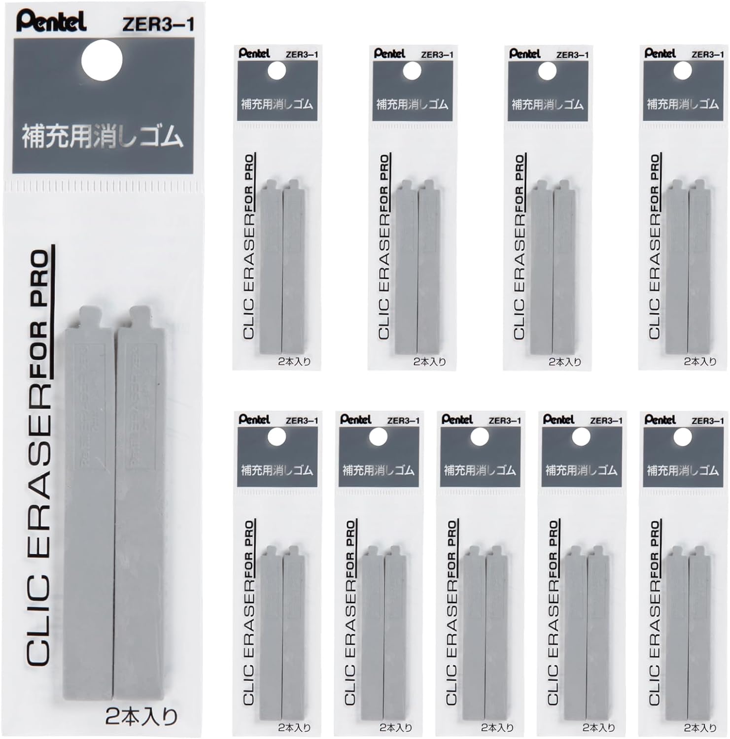 Pentel ZER3-1 Refill Eraser, Click Eraser for Pro Use, 10 Pieces