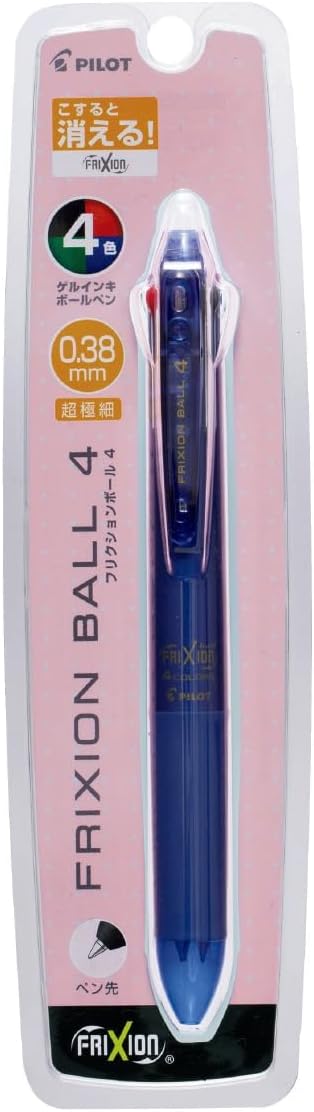 PILOT Ballpoint Pen, Frixion Ball 4, 0.38mm Ultra Fine, 4 Colors (Black, Red, Blue and Green), Blue Black Body (PLKFB80UF-BB)
