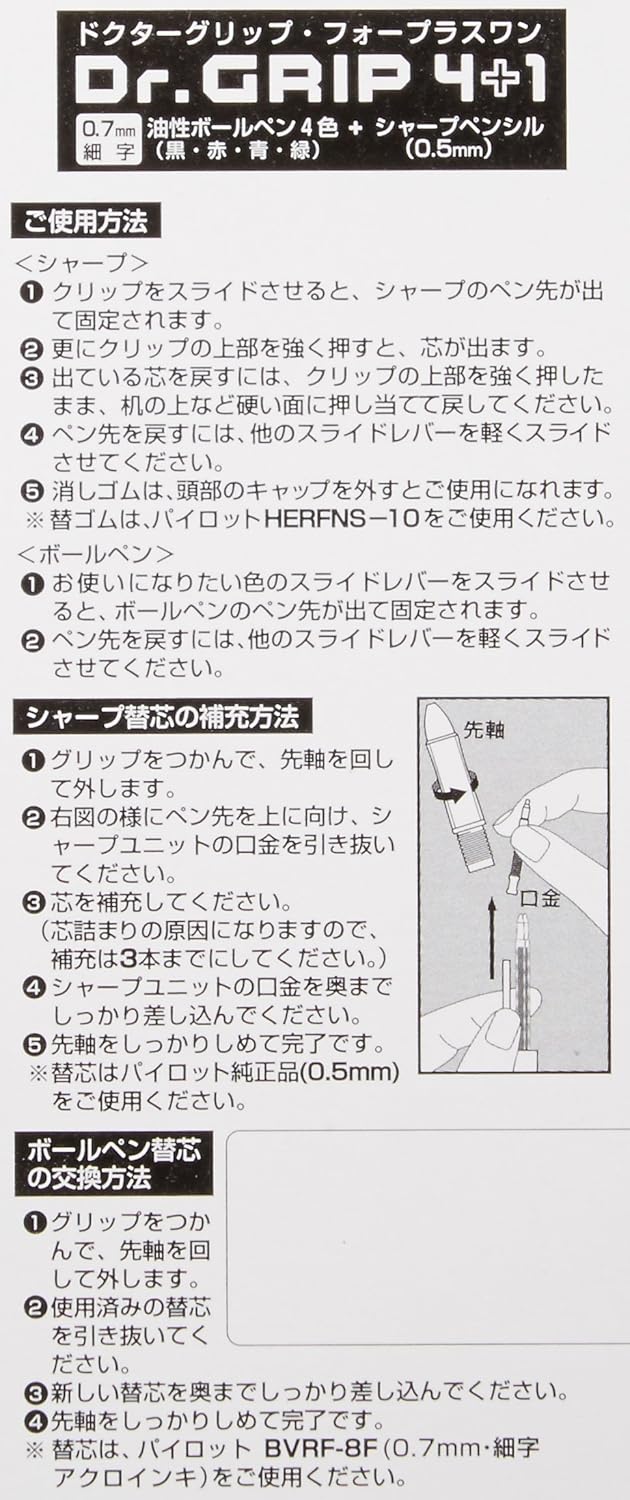 PILOT Dr. Grip 4+1, 4 Color 0.7 mm Ballpoint Multi Pen and 0.5 mm Pencil - Champagne Gold Body