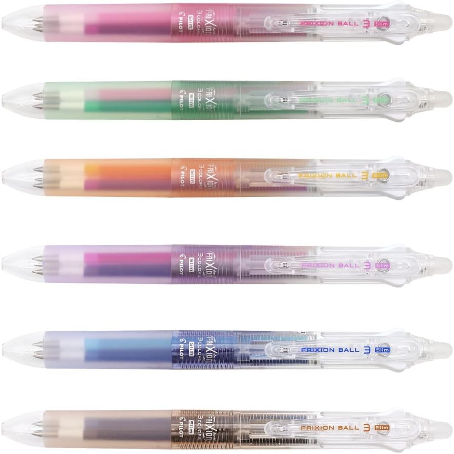 PILOT Erasable 3-Color Ballpoint Pen "Colorful Frixion Ball 3 Slim" (Classic Colors) (Black, Brown, Blue Black)