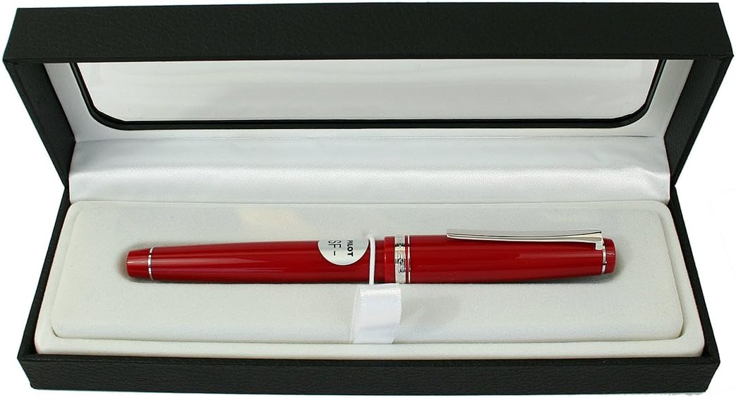 PILOT Falcon Collection Fountain Pen, Red Barrel with Rhodium Accents, Soft Extra Fine Nib, Blue Ink (71620)