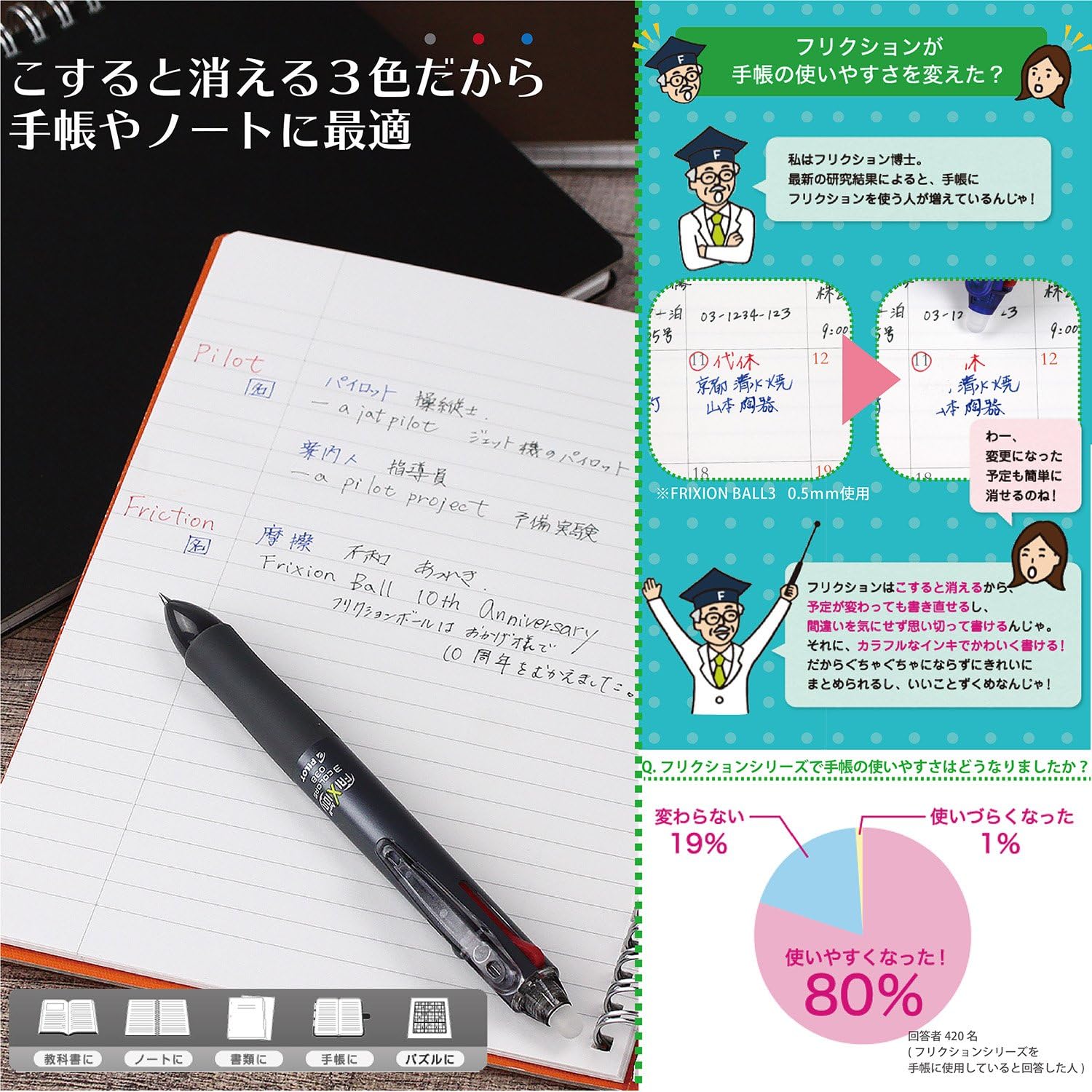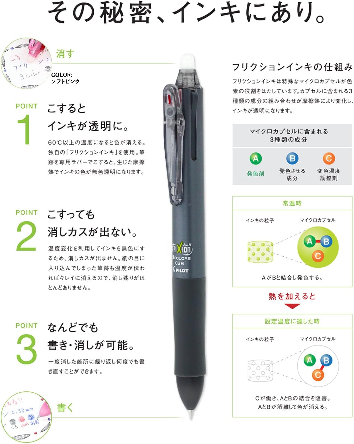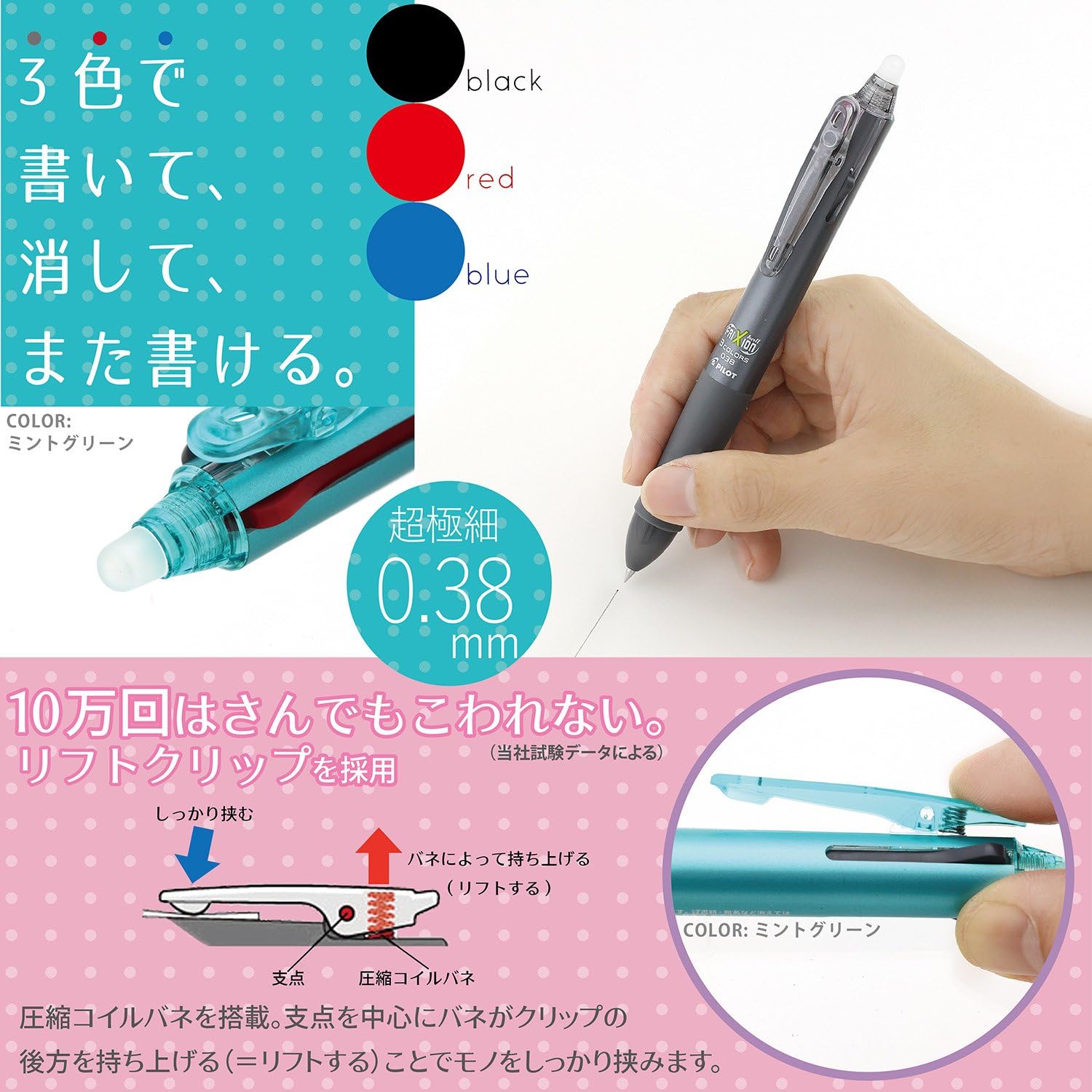 PILOT FriXion 3 038, 3 Color Ballpoint Pen, 0.38mm, Gray Body (4902505501616)