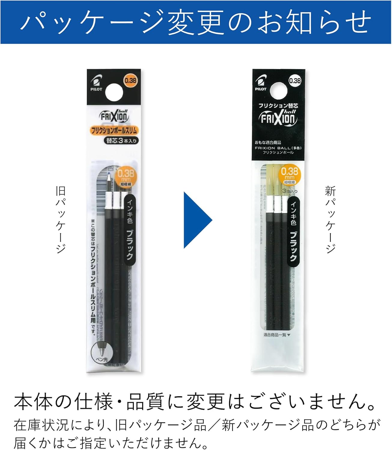 PILOT Frixion Ball Pen 038 Refill For Slim and 3 Set Ball Pen, Pack of 3, Black (LFBTRF30UF3B)