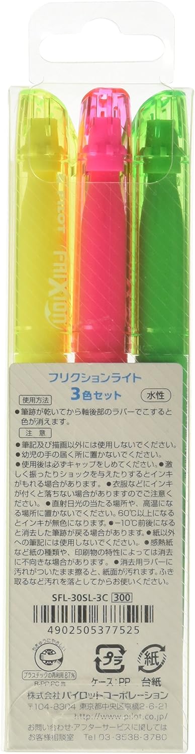 PILOT Highlighter Frixion Light, 3 Color Set (SFL-30SL-3C)