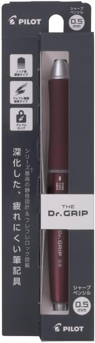 PILOT HTDG-90R-BO The Doctor Grip Mechanical Pencil, 0.02 inches (0.5 mm), Bordeaux
