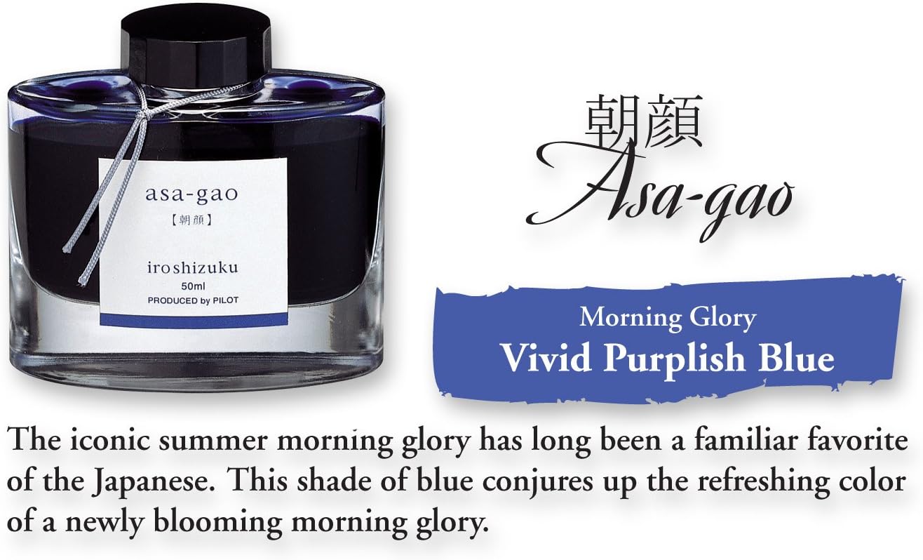 PILOT Iroshizuku Bottled Fountain Pen Ink, Asa-Gao, Morning Glory (Dark Blue) 50ml Bottle (69203)