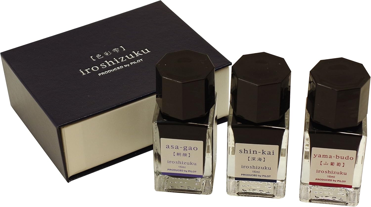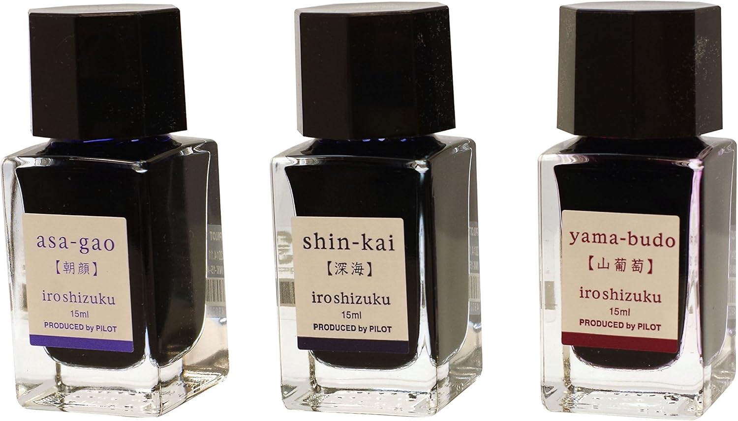 PILOT Iroshizuku Mini Fountain Pen Ink - 15 ml Bottle 3 Colors Set - AS/SNK/YB (Japan Import)