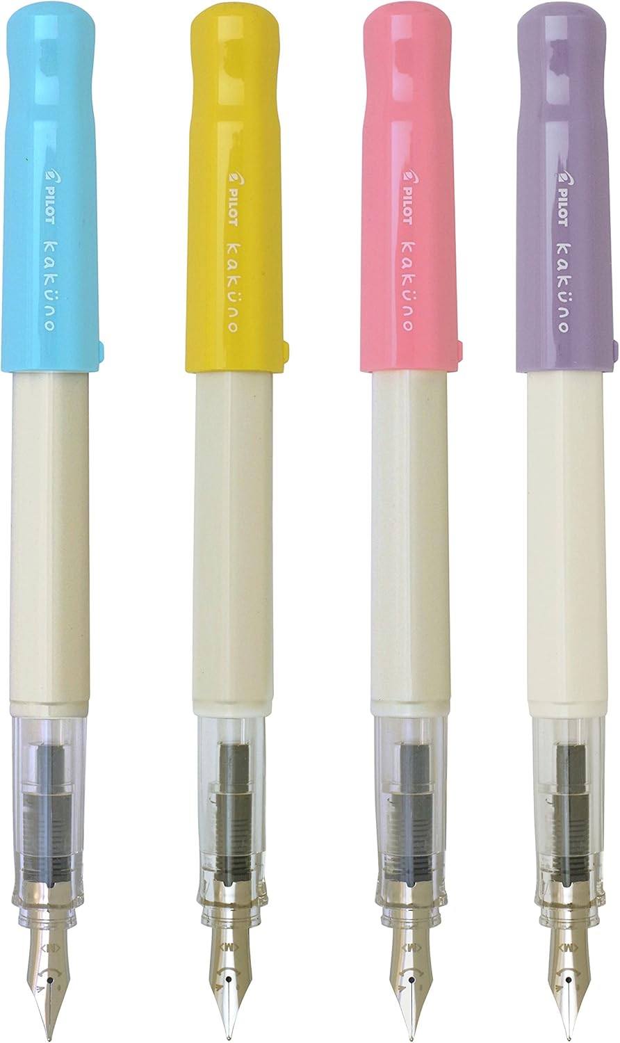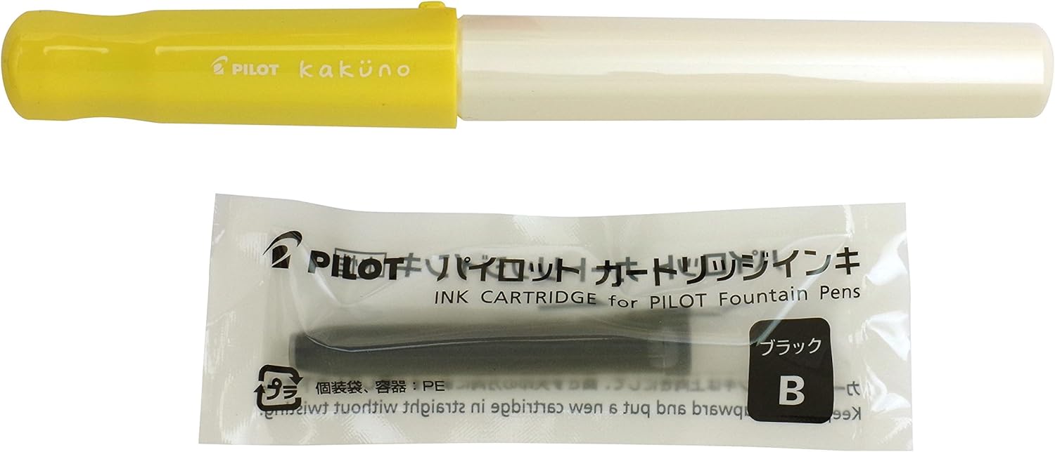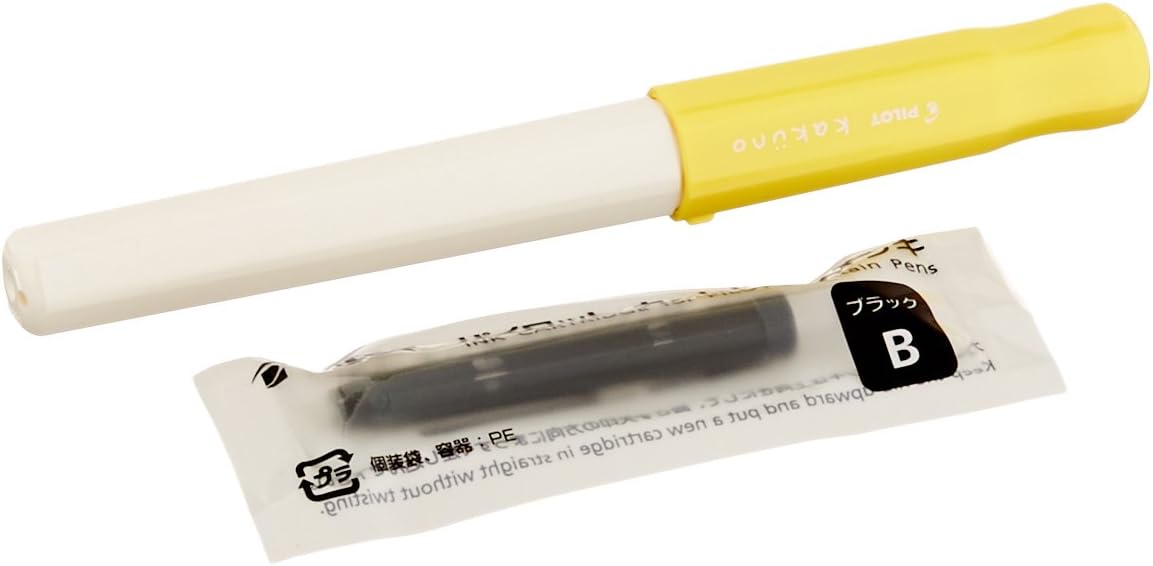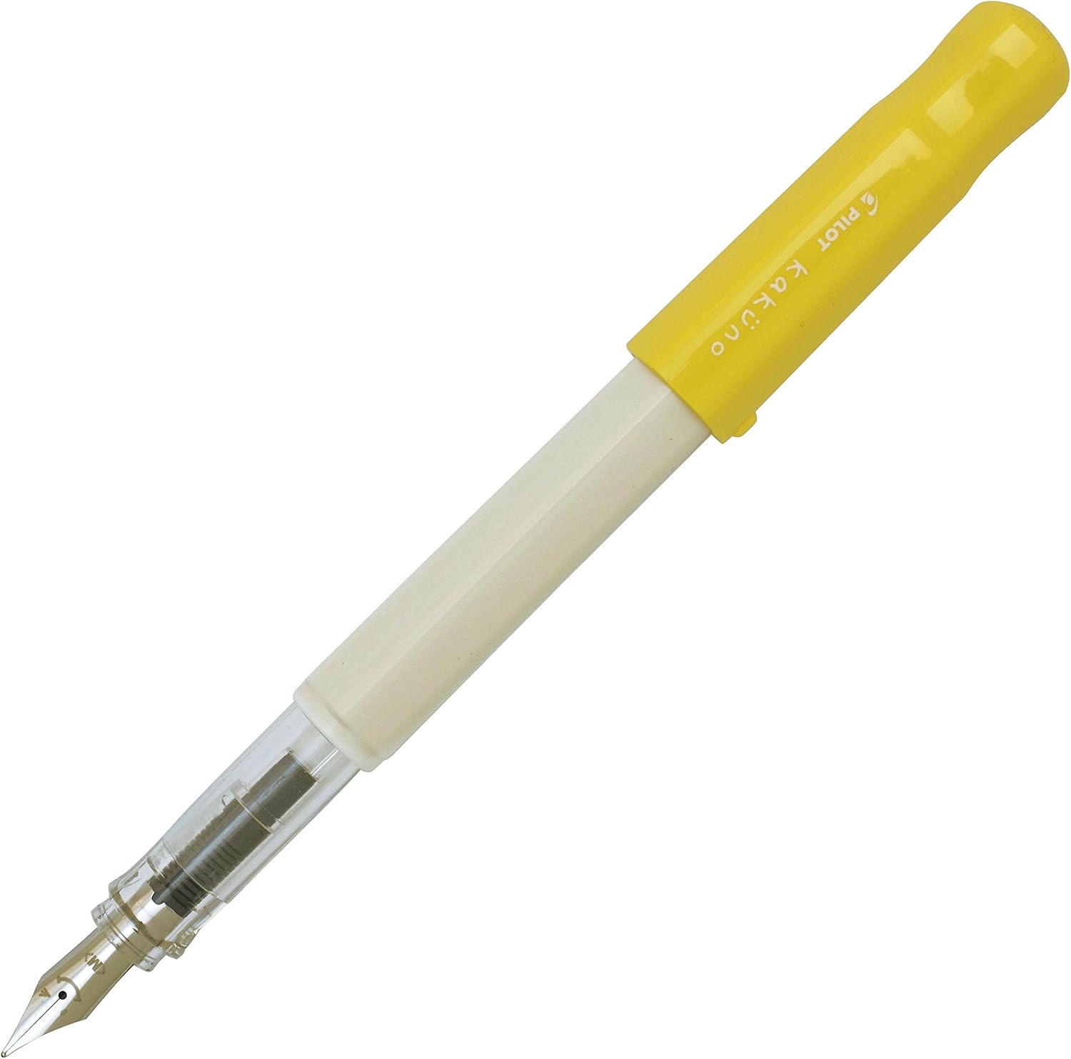 PILOT Kakuno Medium-Nib Fountain Pen, White Body Soft Yellow Cap Body (FKA-1SR-SYM)