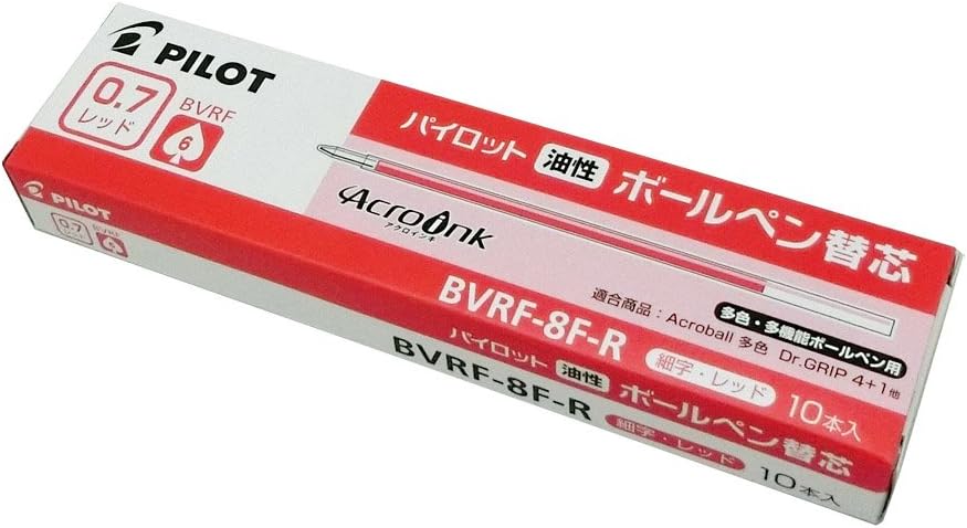 Pilot Ballpoint Pen Refill, BVRF-8F-B, 0.7mm 10 Pieces (Red)