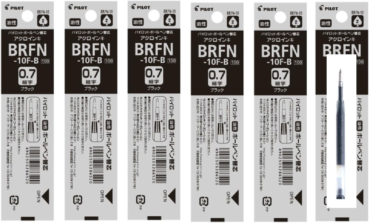 Pilot BRFN-10F-B Rollerball Pen Refill, Fine Point, 0.7mm, Black, 6 Pens