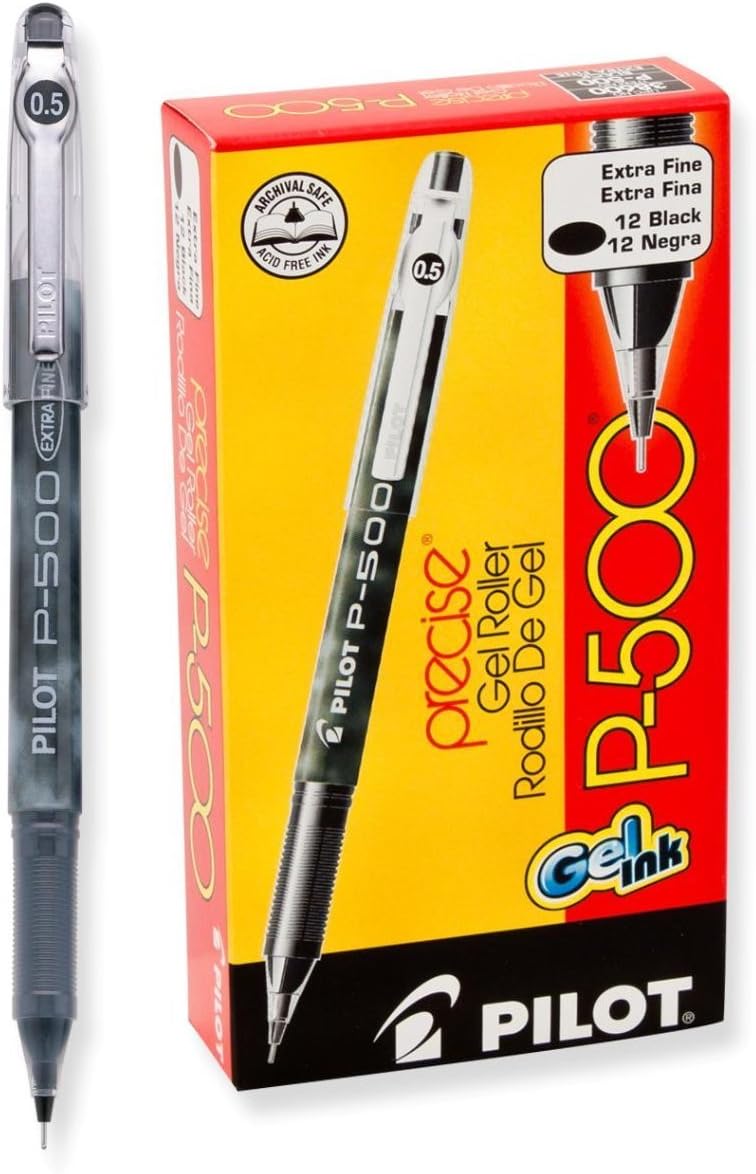PILOT Precise P-500 Gel Ink Rolling Ball Pens, Extra Fine Point, Black Ink, 6 Pens