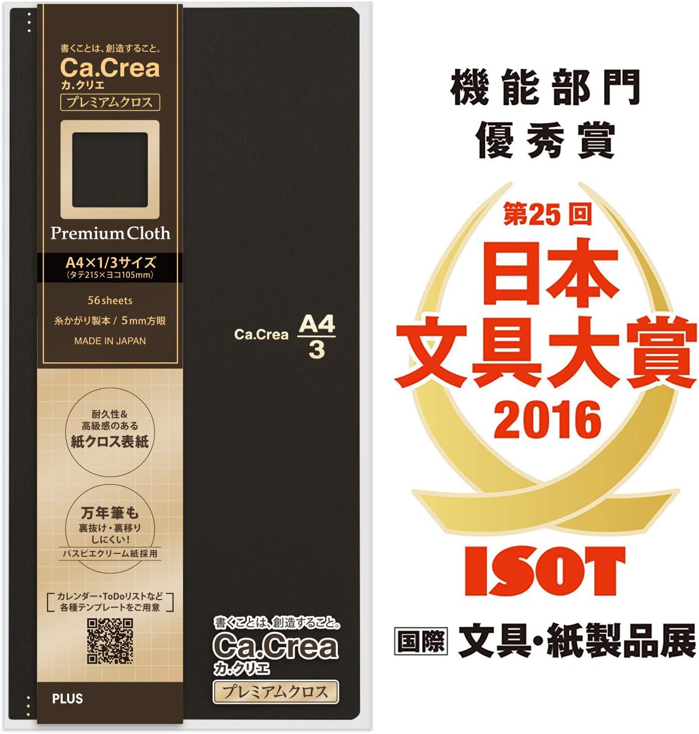 PLUS 77-926 Crie Notebook – A4 1/3 Premium Cloth Notepad, 5mm Grid, Matte Black