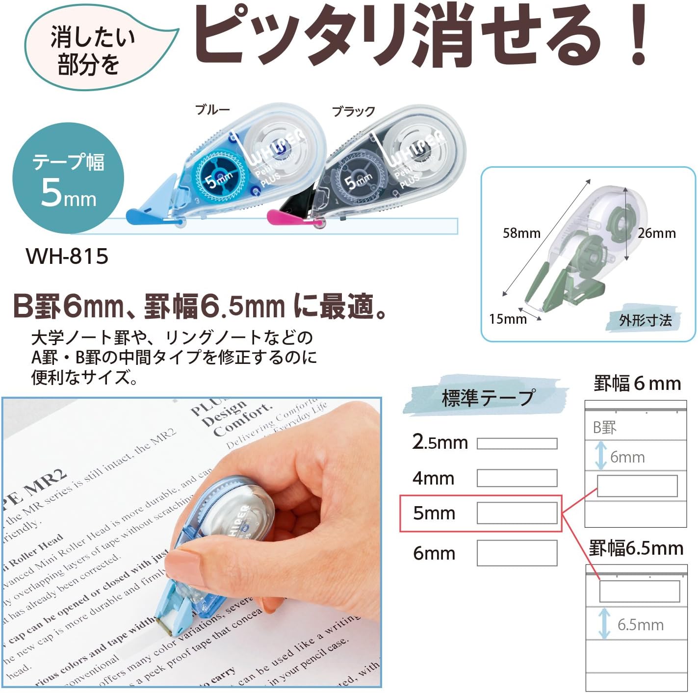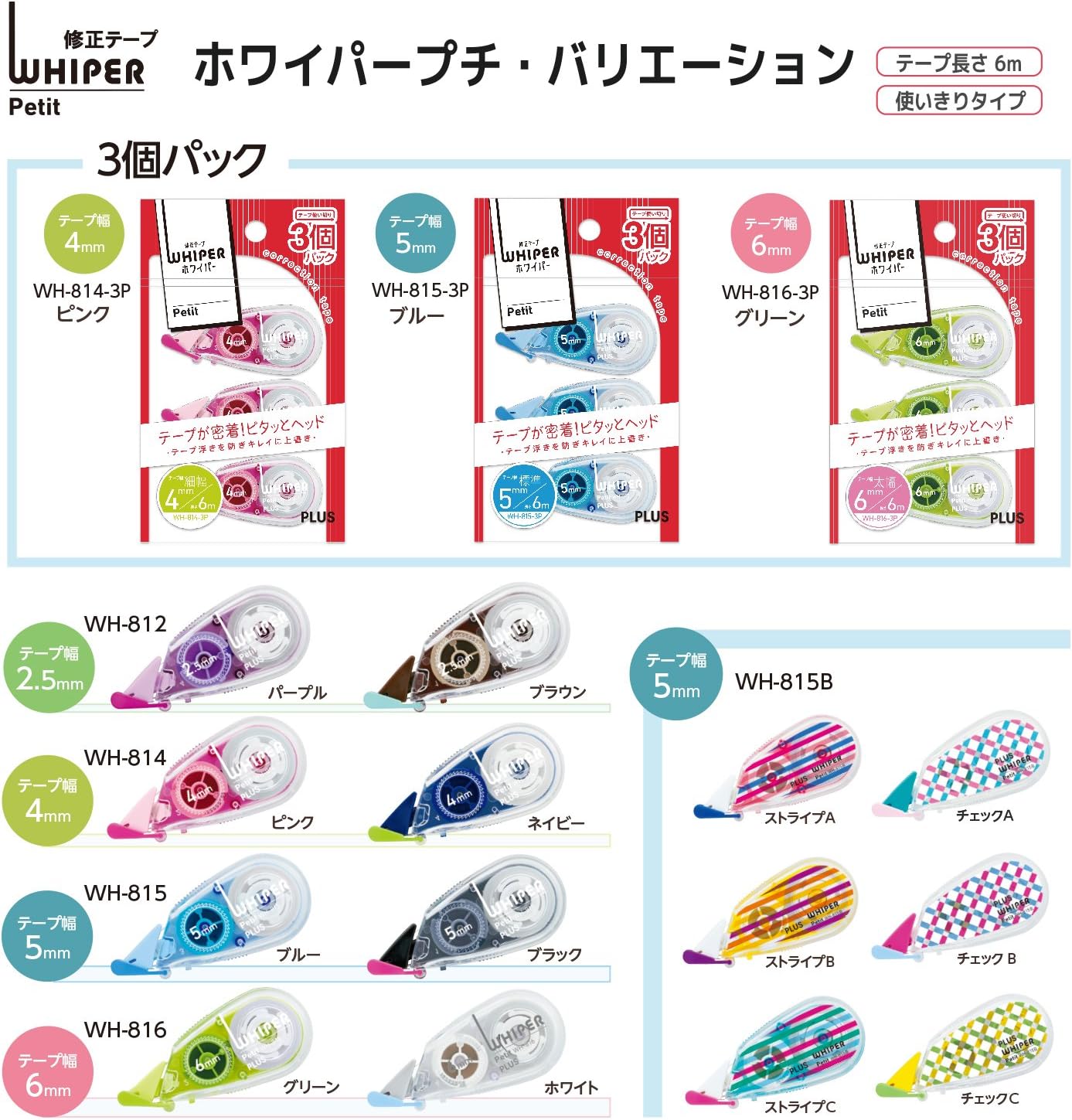 Plus WH-815-3P Correction Tape, White Petite, 0.2 inches (5 mm), Blue, Pack of 3 49-245