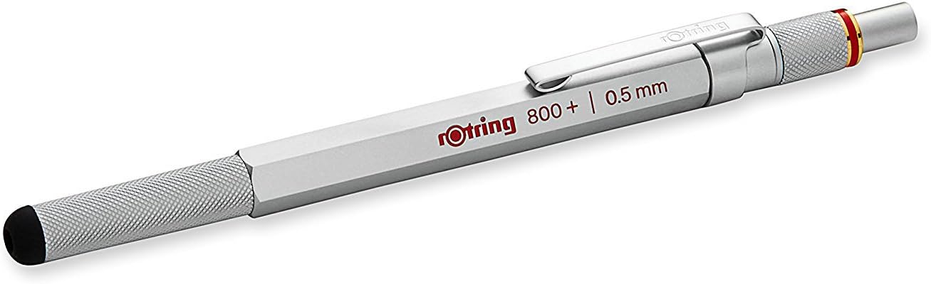 rOtring 1900183 800+ Mechanical Pencil and Touchscreen Stylus, 0.5 mm, Silver Barrel