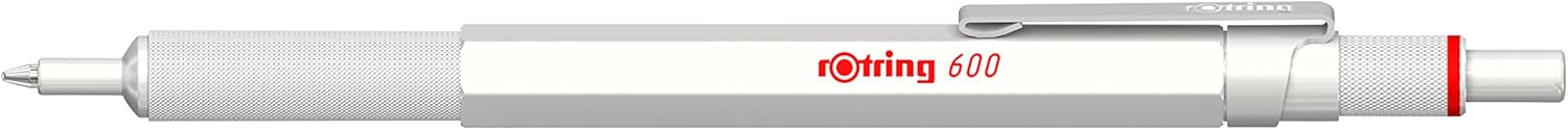 Rotring 600 Metallic Ballpoint Pen Medium Point Black Ink Pearl White Barrel Refillable 1 Count