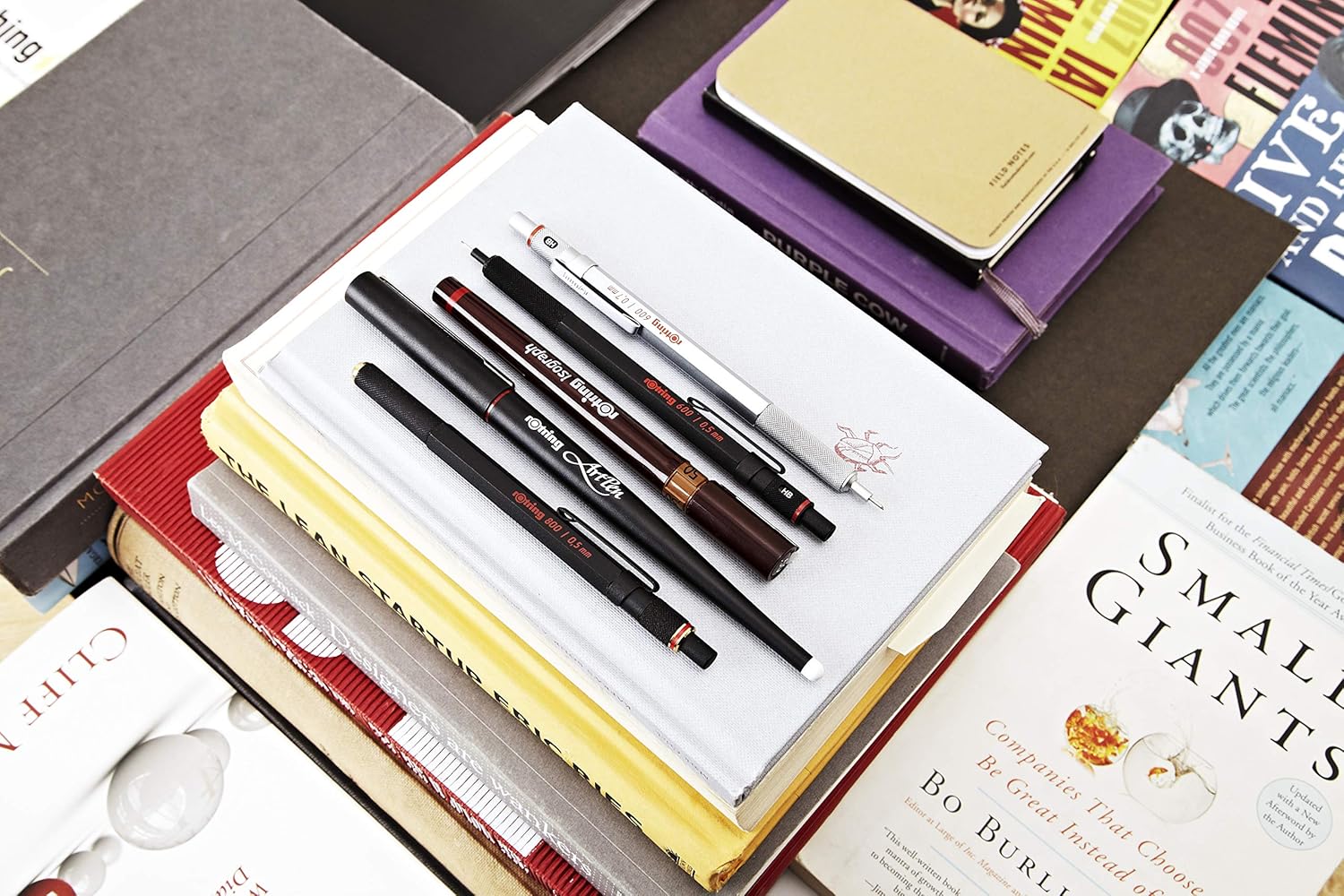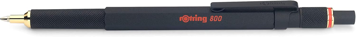 rOtring 800 Retractable Metal Ballpoint Pen, Medium Point, Black Ink, Black Barrel, Refillable, Great Gift for Coworker