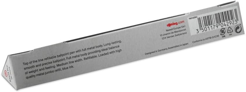 rOtring Rapid Pro Retractable Ballpoint Technical Drawing Pen, Medium Point, Blue Ink, Black Full-Metal Body