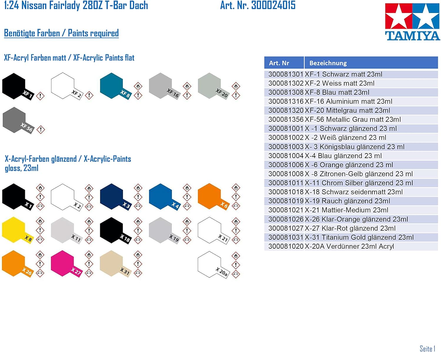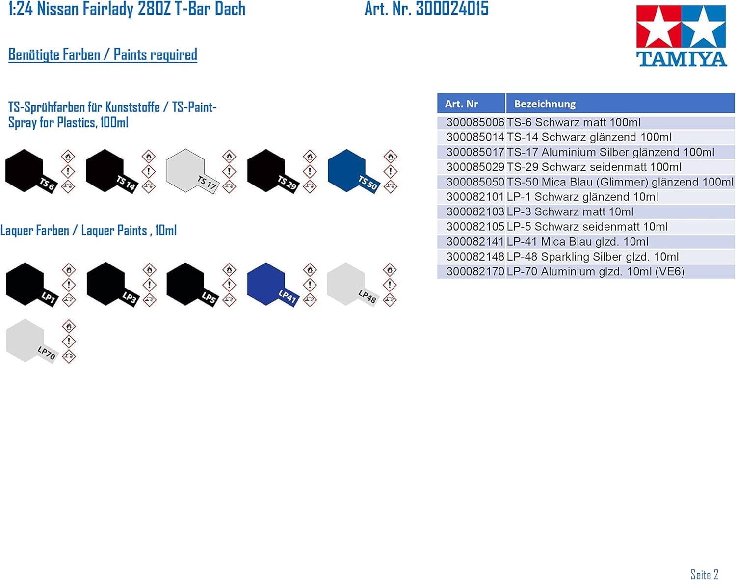 Tamiya 1/24 Nissan Fairlady 280Z with T-Bar Roof TAM24015 Plastics Car/Truck 1/24-1/25