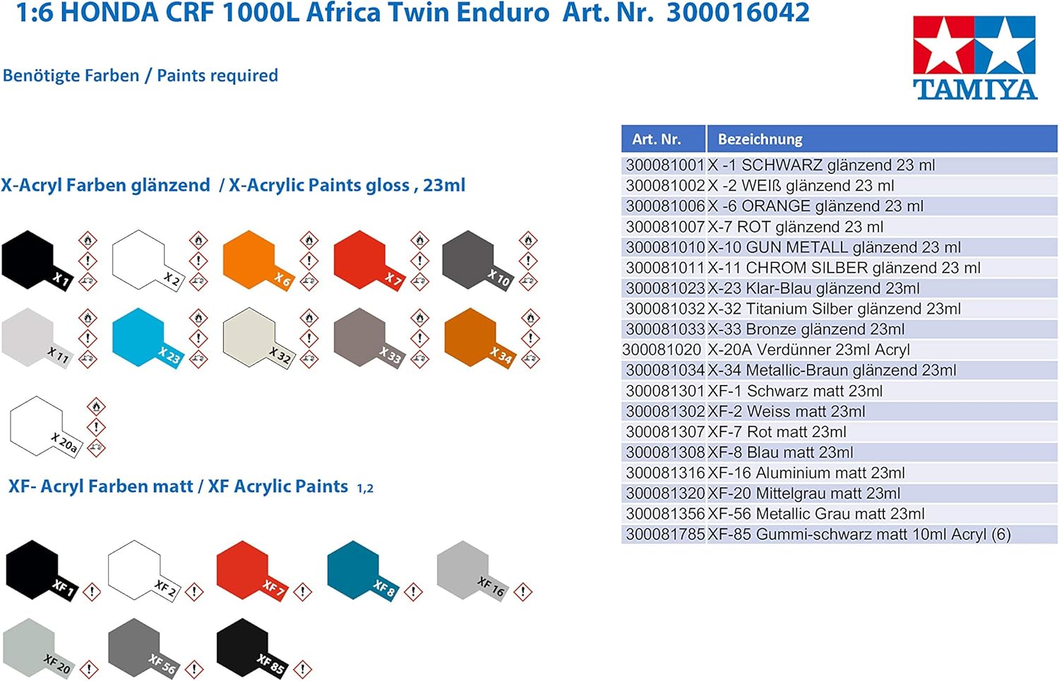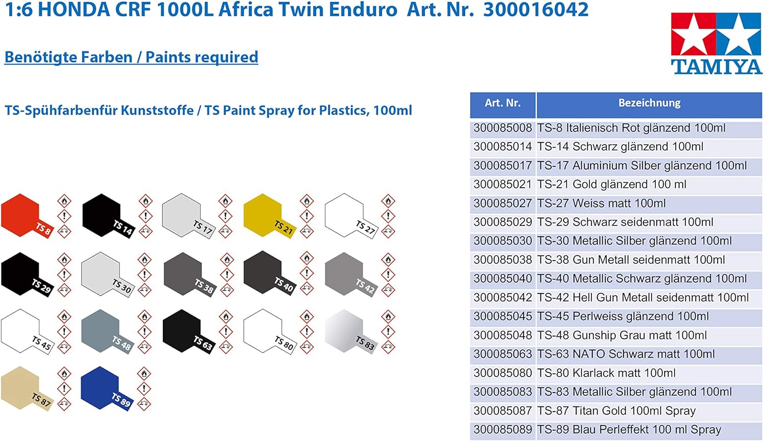 Tamiya 1/6 Motorcycle Series No. 42 Honda CRF1000L Africa Twin Plastic Model 16042