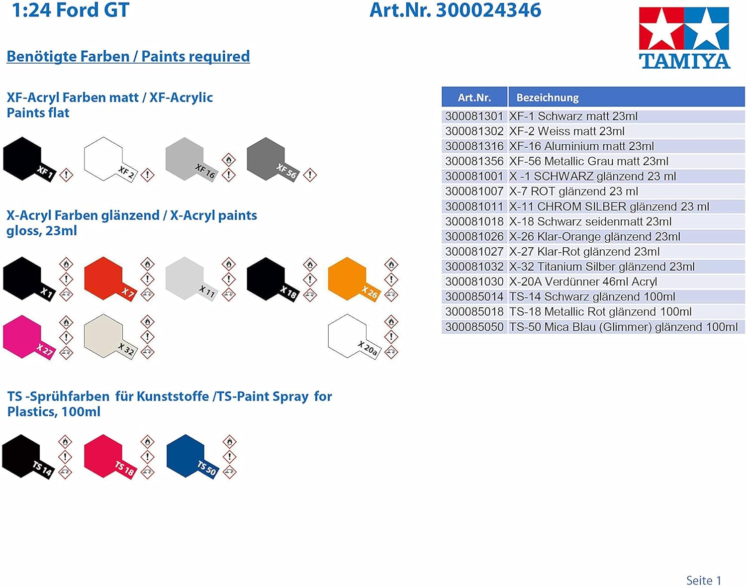 TAMIYA 24346 1/24 Ford GT Plastic Model Kit