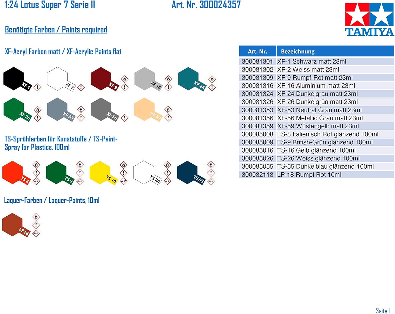 Tamiya 24357-000 300024357 Alfa Romeo 1:24 Lotus Super 7 Series II, Highly Model, Plastic, Assembly Kit, Detailed Replica, Unpainted